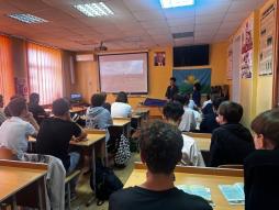(Левонян Д., Плюцинский А.) побывали в гостях у старшеклассников, которые узнали об особенностях учебы и службы в военном вузе